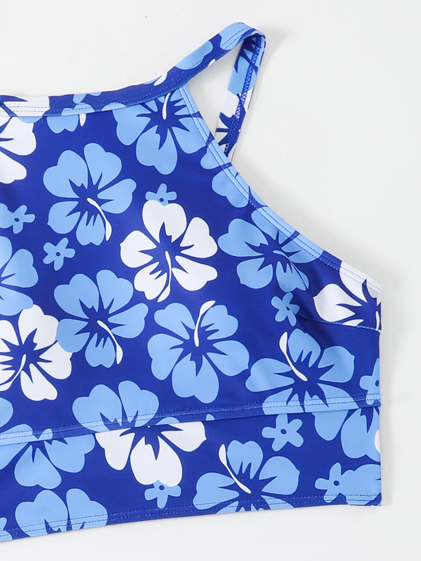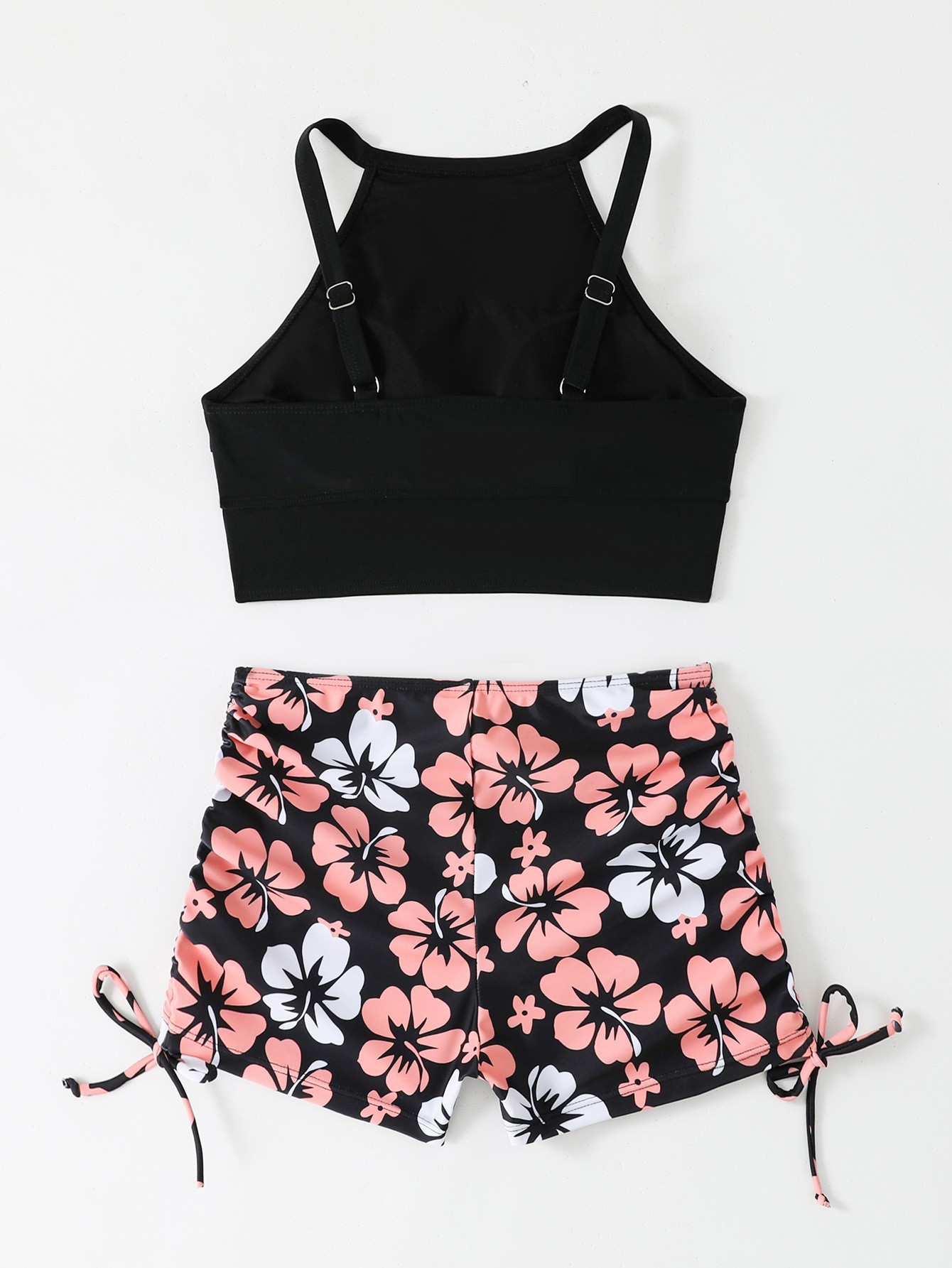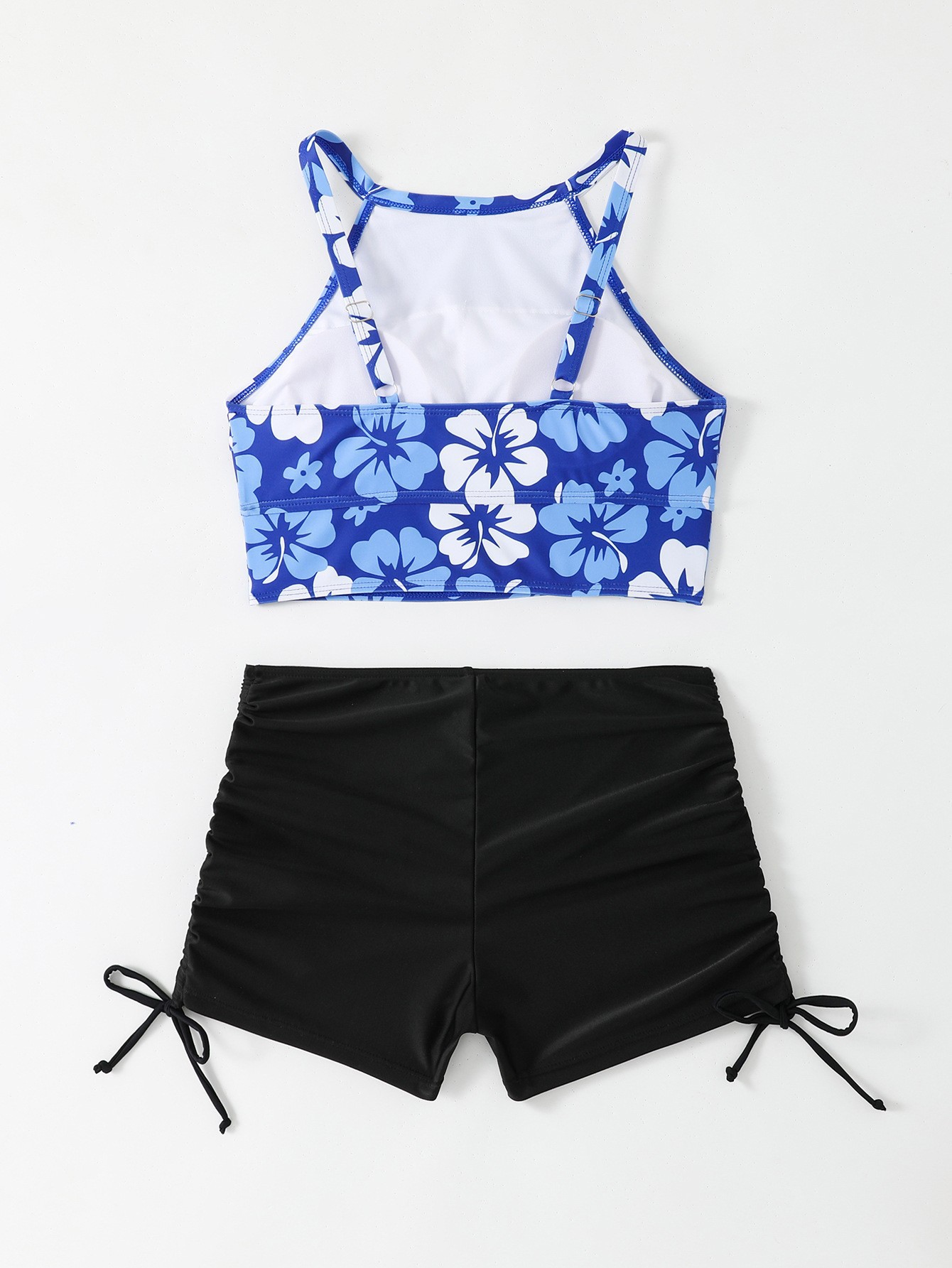 Vest High Waist Drawstring Conservative Split Boxers Bikini Swimsuit